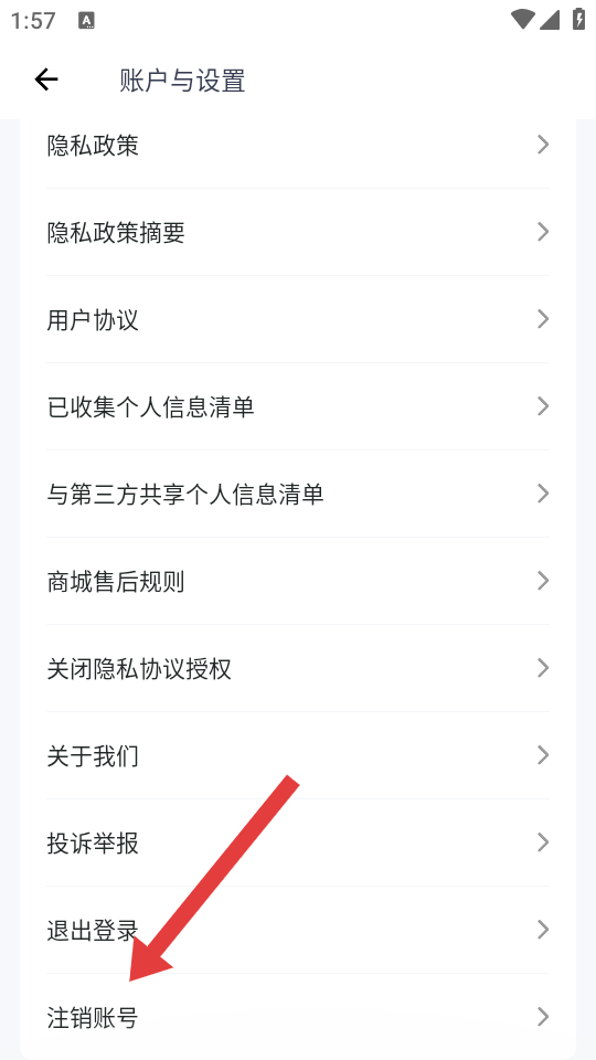 2、在賬戶與設(shè)置頁面,點擊注銷賬號選項,進入注銷類型選擇頁面。