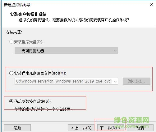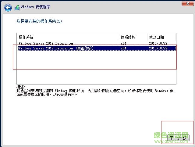 3.這里注意了,第一個紅框是你下載的windwos server 2019 鏡像文件的位置,然后在選擇第二個紅框,點擊下一步