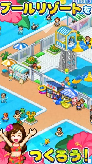 在社交平臺大放異彩的渡假村模擬經營游戲!目標為打造超受歡迎的渡假設施!自由自在地擴建泳池,創(chuàng)造舒適的休閑空間。若成為熱門話題,還能與前來的客人通過社交平臺成為好友。依照客人的愿望建造餐飲店、調配色彩繽紛的池水,滿足大家的心愿吧。送出精美的游泳圈和泳衣當禮物,客人一定會非常開心哦。在餐飲店中放上自己制作的料理,客人也許會來品嘗哦?搭建水上滑道等各式各樣的游樂設施,并依照您的喜好來自定義內部裝潢。當然也能建造陽光明媚的室外泳池。