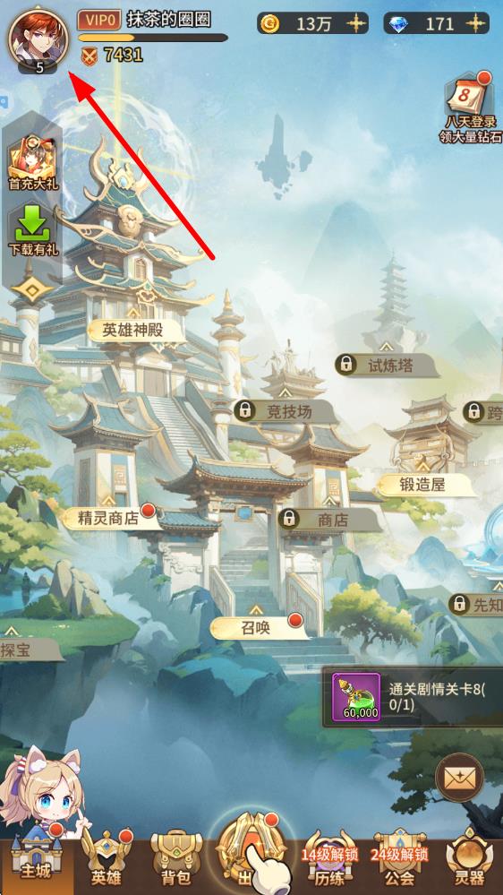 1、進(jìn)入閃爍之光游戲,在游戲主界面點(diǎn)擊左上角的玩家頭像,進(jìn)入個人空間頁面。