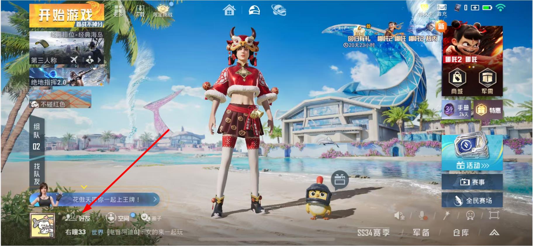 1、進(jìn)入游戲主界面點(diǎn)擊左下角的好友圖標(biāo),打開好友相關(guān)界面。