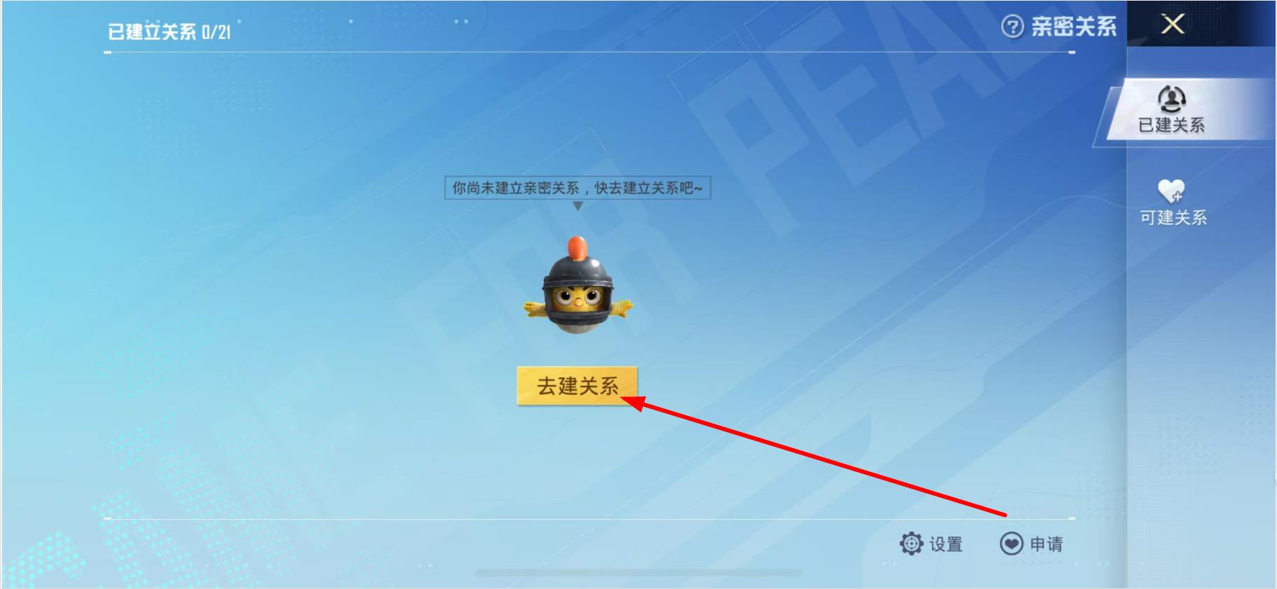 3、在親密關(guān)系界面,點(diǎn)擊去建關(guān)系,選擇想要建立戀人關(guān)系的好友并發(fā)送申請,待對方同意后即可建立戀人關(guān)系。