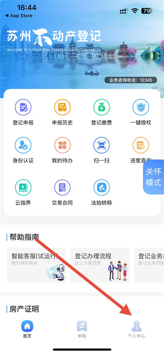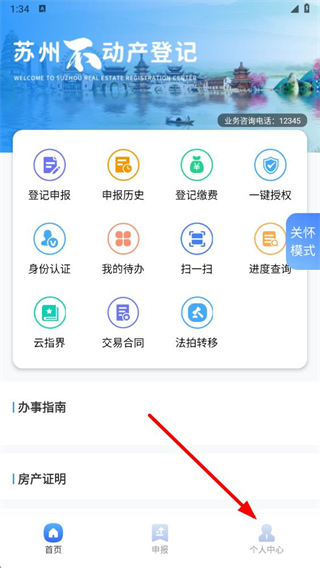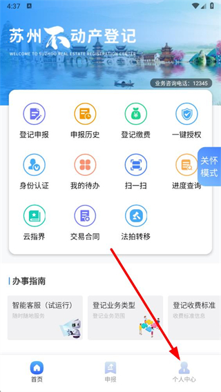 1、打開蘇易登APP,在首頁點擊右下角個人中心選項。