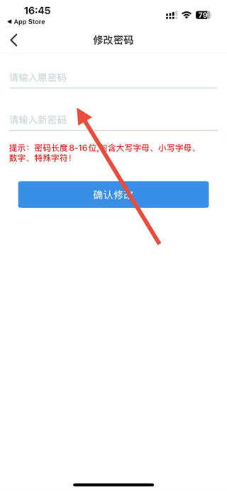 3、在修改密碼頁面,輸入原密碼和新密碼。