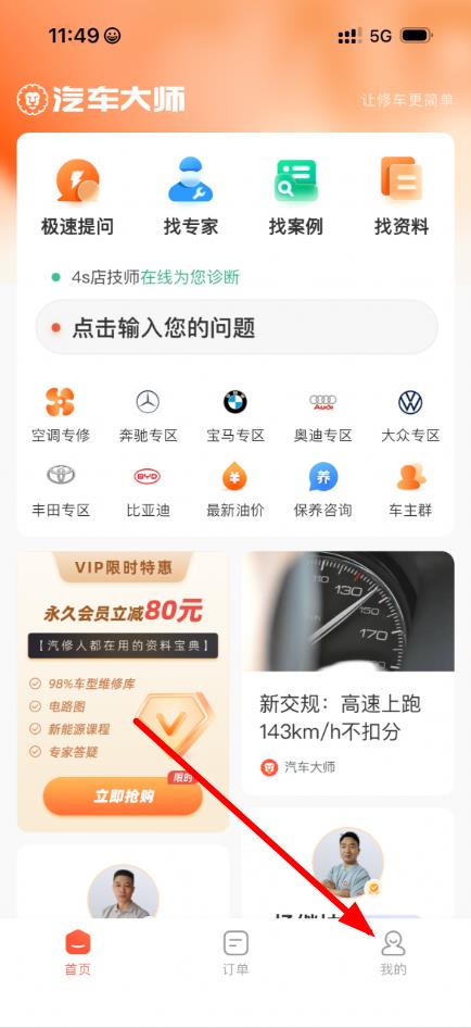 1、打開汽車大師APP,在首頁點(diǎn)擊右下角我的選項(xiàng)。