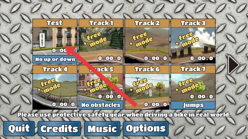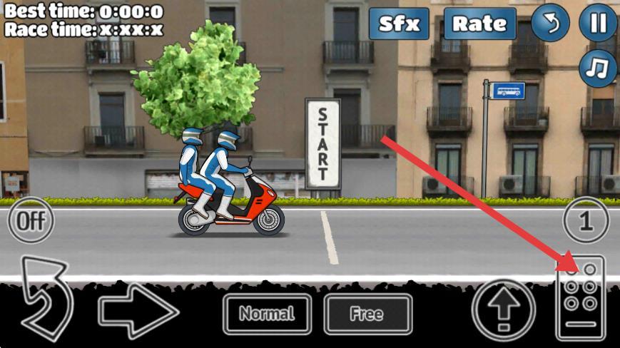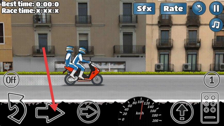 3、進(jìn)入游戲后,點(diǎn)擊左側(cè)的箭頭按鈕用于控制摩托車的前進(jìn)方向。