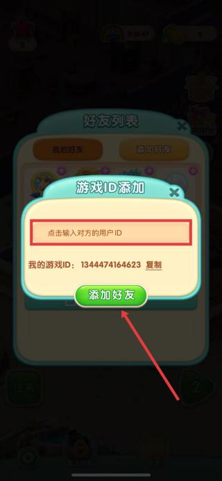 4、在彈出的游戲ID添加窗口中,輸入對方的用戶ID,再點擊添加好友按鈕,即可發(fā)送加好友申請。