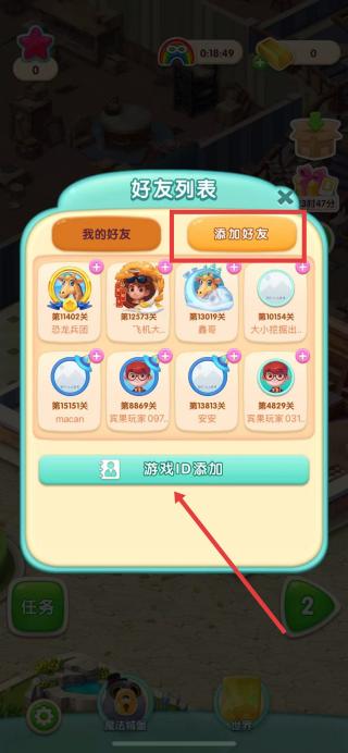 3、在好友列表界面,點擊添加好友選項卡,然后點擊游戲ID添加按鈕。