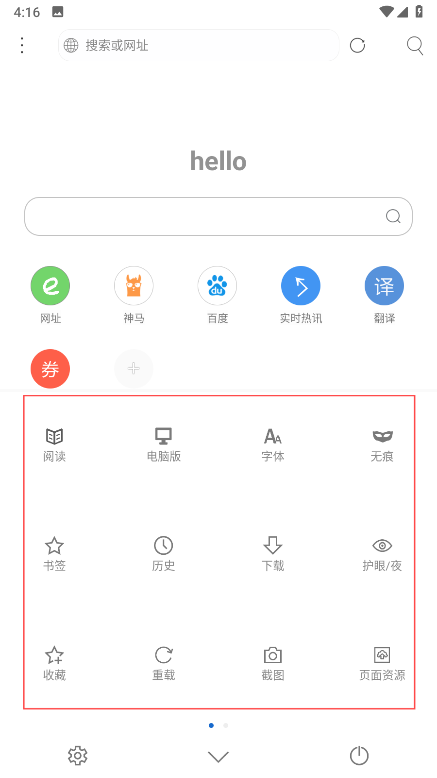 1、點(diǎn)擊底部功能欄的展開(kāi)按鈕,會(huì)彈出閱讀、電腦版、字體、無(wú)痕等豐富功能選項(xiàng),點(diǎn)擊閱讀可進(jìn)入閱讀模式,點(diǎn)擊字體能對(duì)網(wǎng)頁(yè)字體進(jìn)行設(shè)置,滿足不同瀏覽需求。