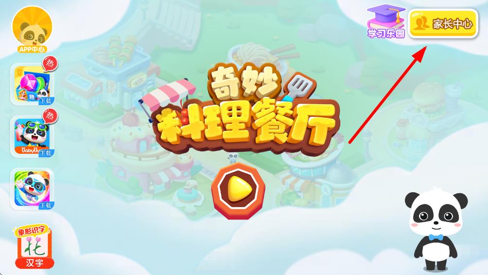 1、打開奇妙料理餐廳游戲,在主界面右上角找到家長中心按鈕,點擊進(jìn)入家長操作相關(guān)頁面。