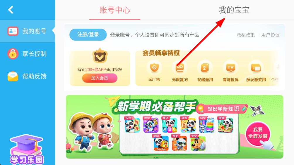 3、通過驗證進(jìn)入賬號中心界面,點擊界面右上方的我的寶寶選項,進(jìn)入寶寶資料設(shè)置頁面。