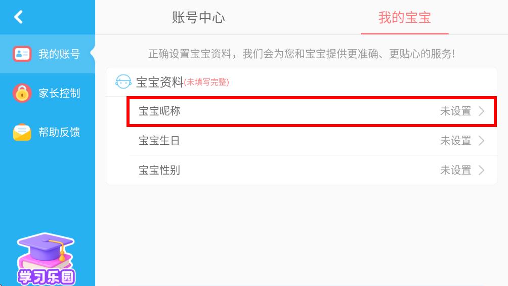 4、在我的寶寶頁面中,找到寶寶昵稱選項,點擊該選項在輸入框中輸入想要設(shè)置的寶寶名字,確認(rèn)后即可完成修改。