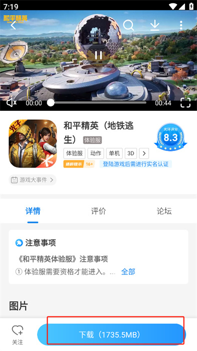 5、點(diǎn)擊該游戲后將會(huì)看到游戲的詳情、評(píng)價(jià)、論壇和評(píng)分,同時(shí)還能看到開啟游戲模擬器的溫馨提示(新手可仔細(xì)閱讀);