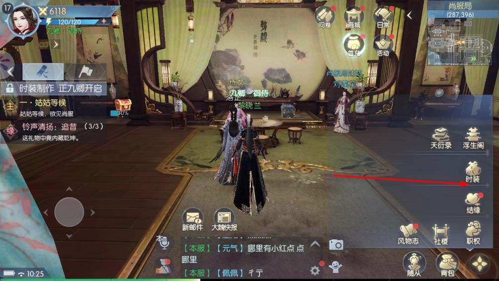 1、進(jìn)入浮生為卿歌游戲主界面,點擊右側(cè)功能欄中的時裝圖標(biāo)。