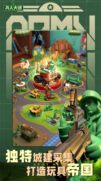 采集玩具資源,發(fā)展指揮部基地。聯(lián)盟指揮部、空軍指揮部、坦克營地、科技研究所,打造你的玩具帝國!