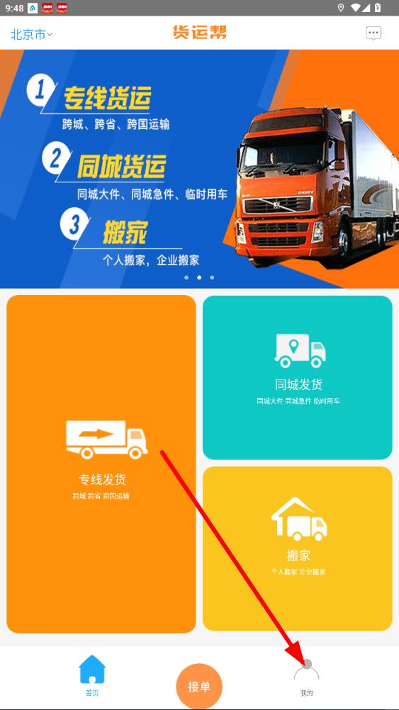 1、打開貨運幫app,在首頁點擊底部導航欄中的我的。