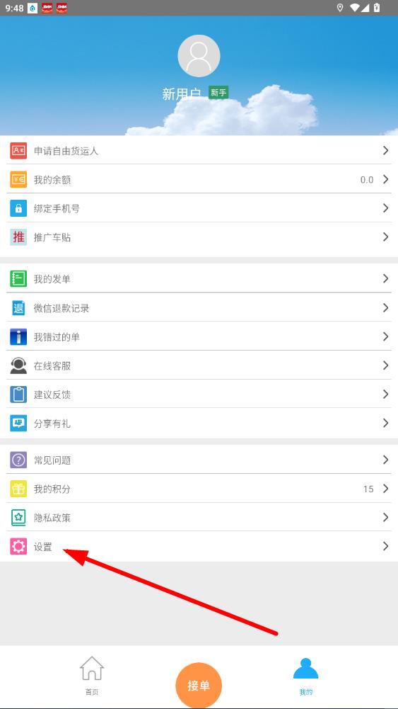 2、進入我的頁面后,下滑找到并點擊設置選項。