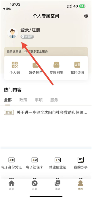 2、在個人專屬空間頁面中,點擊登錄注冊選項進入登錄頁面。