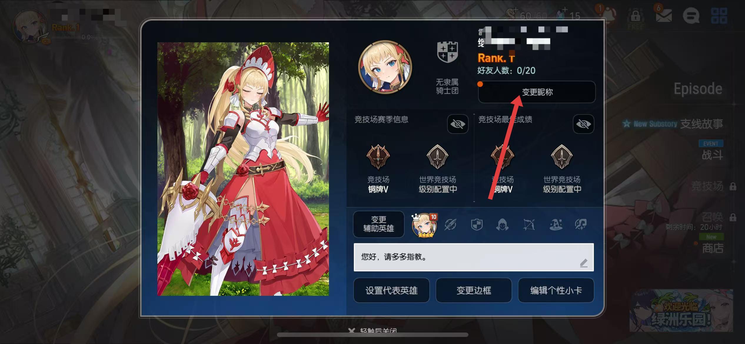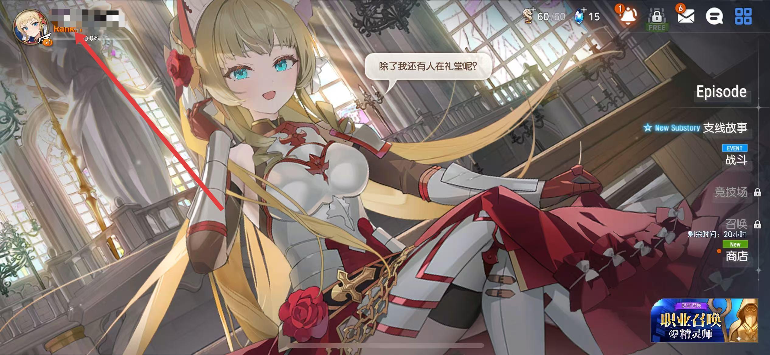1、打開第七史詩游戲,進入游戲主界面,點擊左上角的角色頭像。