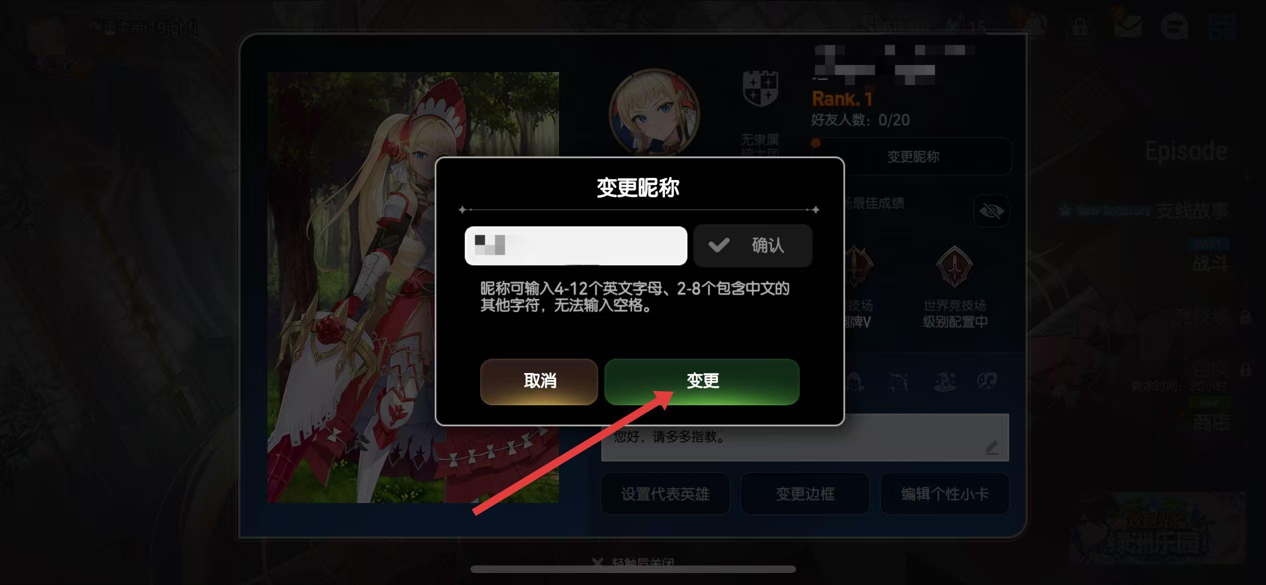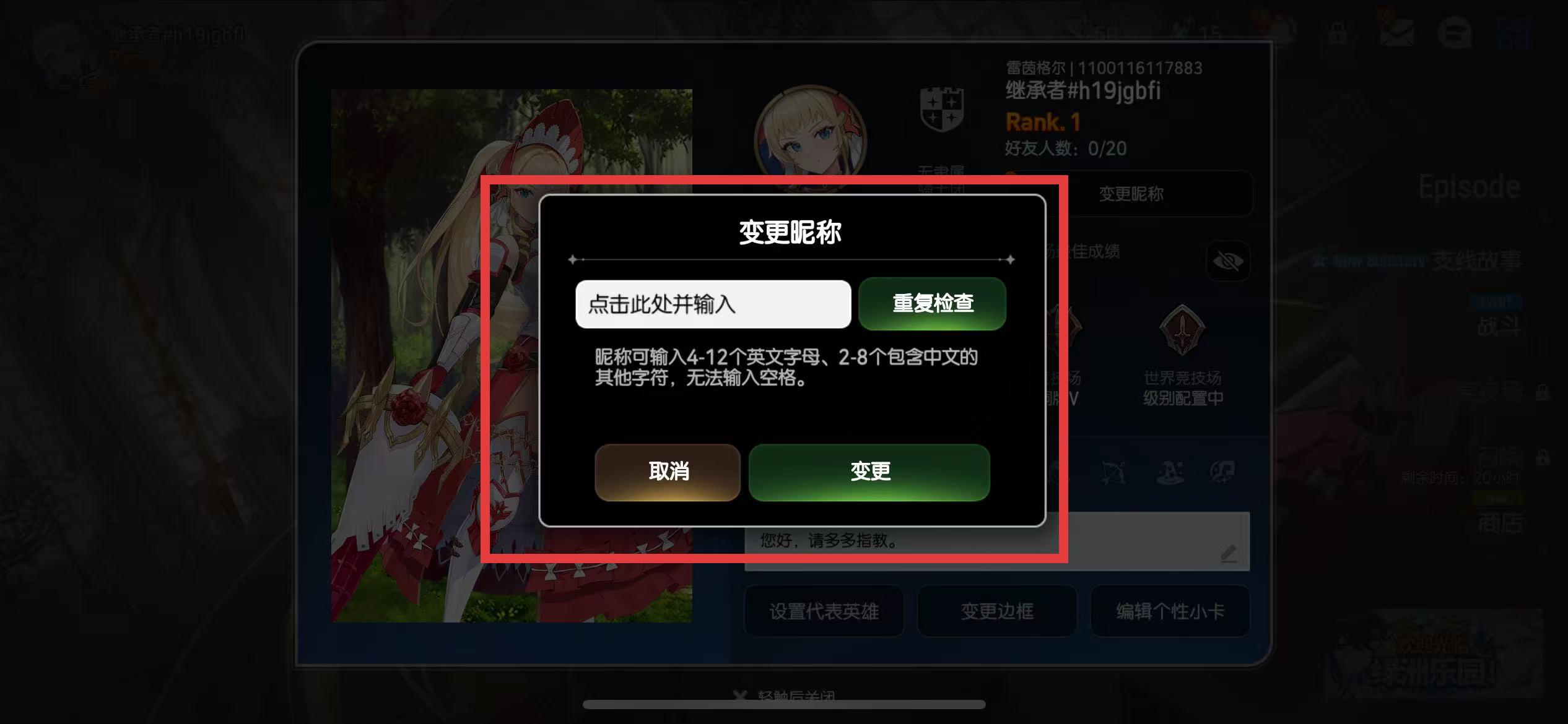 4、點擊重復檢查確認昵稱是否可用,點擊變更按鈕,即可完成昵稱修改。
