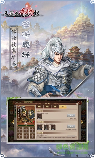三國(guó)志奇?zhèn)b傳九游專(zhuān)區(qū)游戲是一款好玩的三國(guó)沙盒策略手游,游戲中營(yíng)造了一個(gè)龐大的沙盒三國(guó)世界,玩家可以種田,可以探索新的領(lǐng)土,可以培養(yǎng)武將,歡迎喜愛(ài)的朋友到綠色資源網(wǎng)下載試玩!