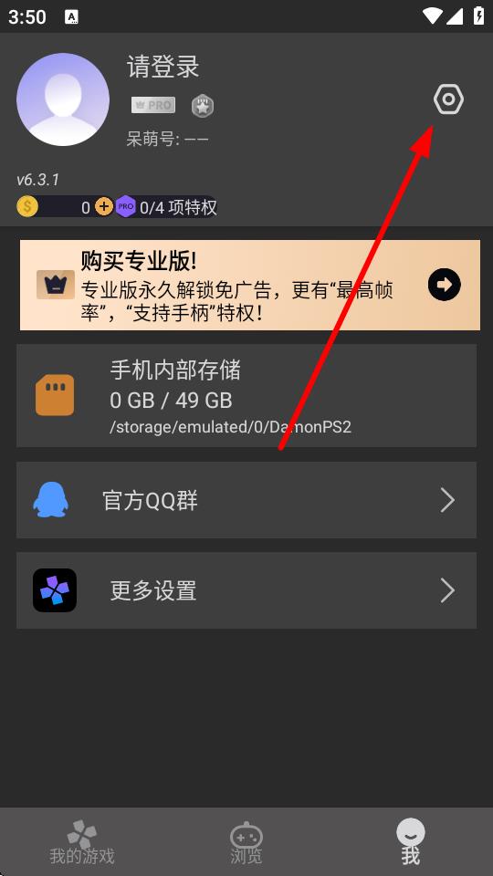1、打開呆萌PS2模擬器,點擊界面右上角六邊形設(shè)置圖標,進入設(shè)置頁面。
