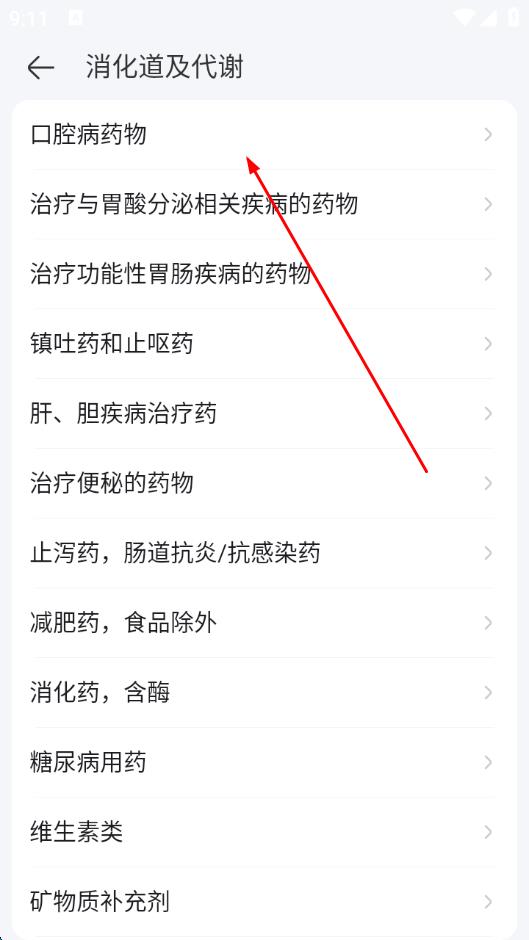 3、進入類別頁面后,找到并點擊細分的藥物分類,如口腔病藥物。