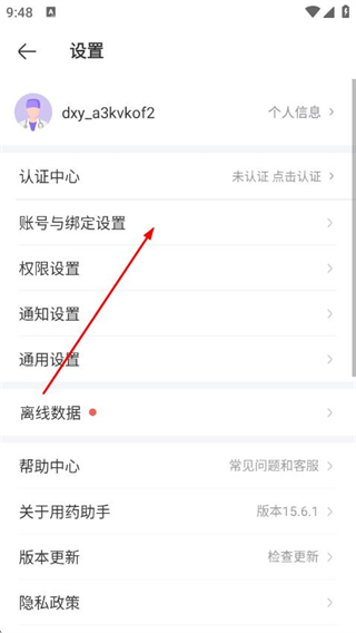 3、在設置頁面點擊賬號與綁定設置,進入賬號與綁定設置頁面。