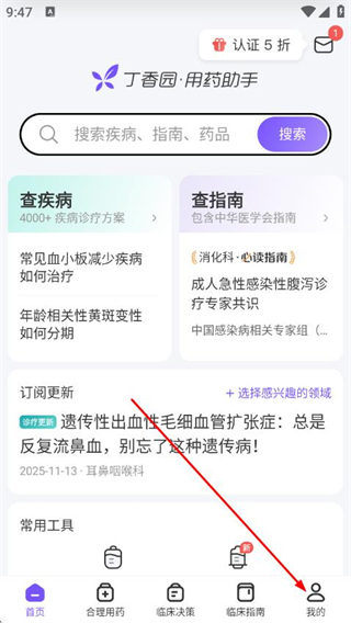 1、打開用藥助手APP,點擊底部我的,進入個人頁面。