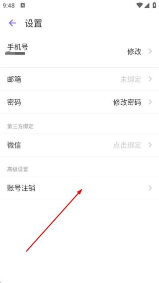 4、在賬號與綁定設置頁面點擊賬號注銷,進入注銷賬號頁面。