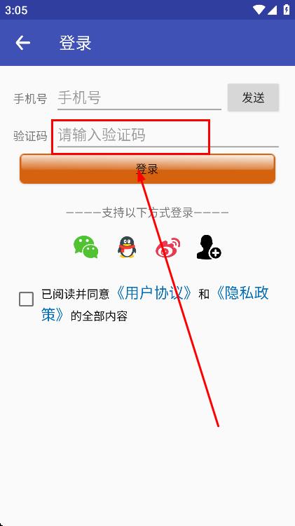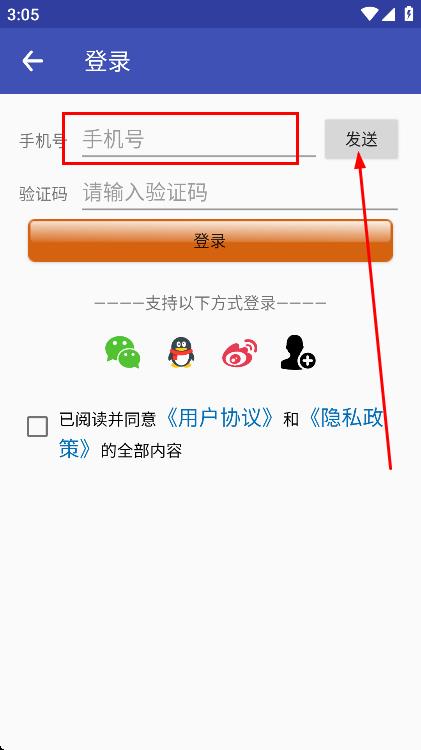 3、輸入需要登錄的手機號,點擊發(fā)送按鈕獲取驗證碼。