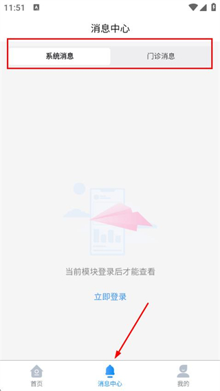 2、設(shè)有消息中心板塊,包含系統(tǒng)消息和門診消息分類,方便用戶及時(shí)獲取疫苗接種相關(guān)通知。