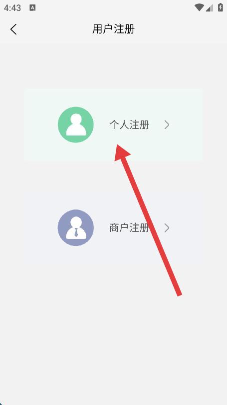 3、進(jìn)入用戶(hù)注冊(cè)頁(yè)面后,點(diǎn)擊個(gè)人注冊(cè)選項(xiàng)。
