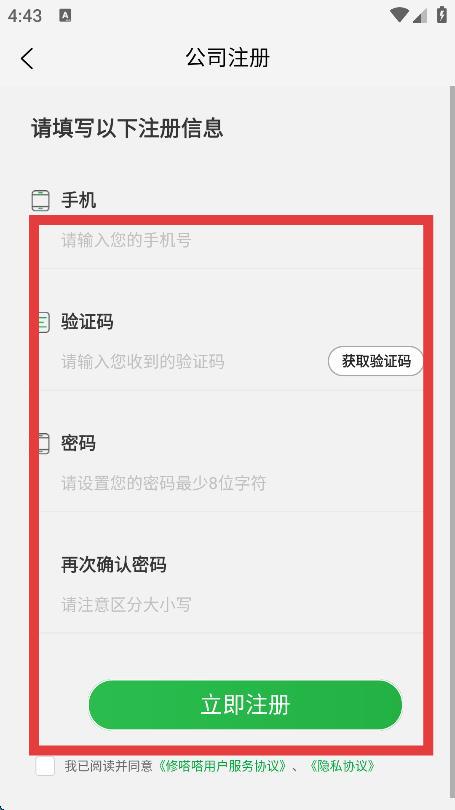 4、根據(jù)要求填寫(xiě)信息,點(diǎn)擊立即注冊(cè),即可完成登錄。