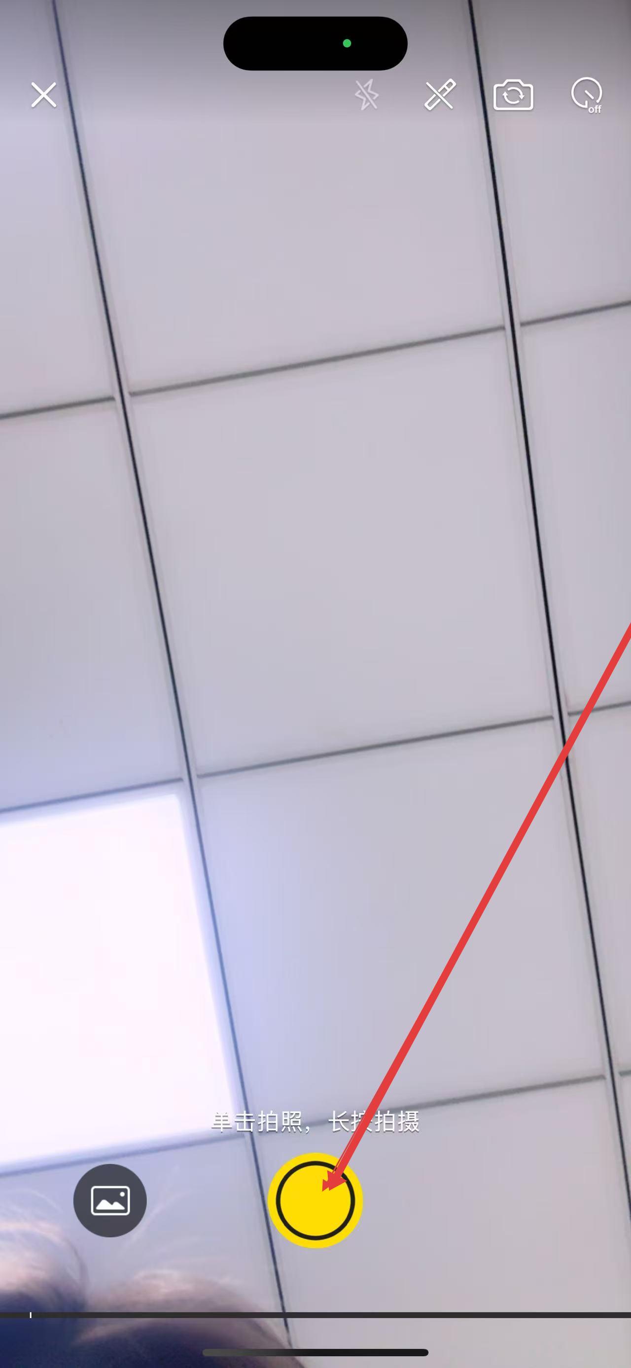 3、進(jìn)入拍攝界面后,調(diào)整好拍攝角度,點(diǎn)擊下方黃色的拍攝按鈕,即可進(jìn)行拍照或長(zhǎng)按進(jìn)行視頻拍攝,完成后可按提示發(fā)布動(dòng)態(tài)。