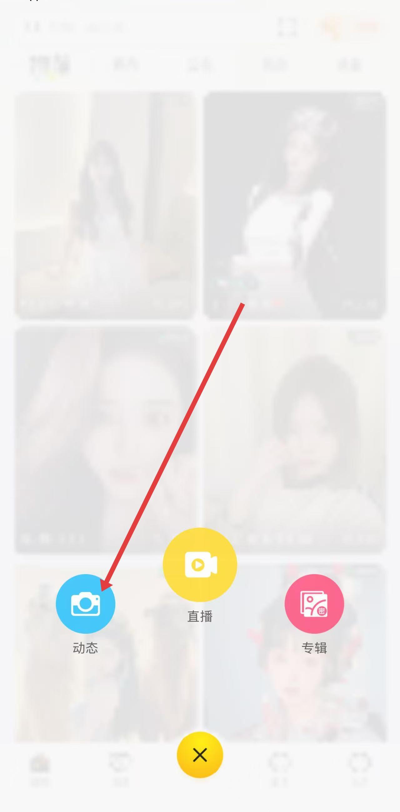 2、在彈出的操作選項(xiàng)界面中,點(diǎn)擊動(dòng)態(tài)對(duì)應(yīng)的相機(jī)圖標(biāo)按鈕,進(jìn)入拍攝界面。