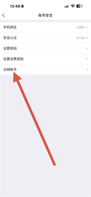 4、在賬號(hào)安全頁(yè)面,點(diǎn)擊注銷賬號(hào)選項(xiàng)。