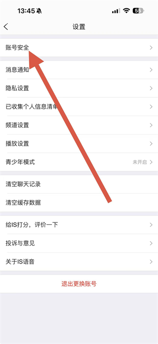 3、在設(shè)置界面中,點(diǎn)擊賬號(hào)安全,進(jìn)入賬號(hào)安全相關(guān)頁(yè)面。