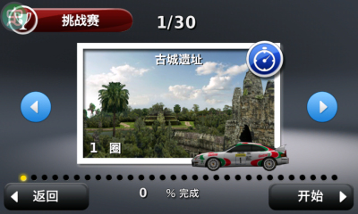 4、游戲分挑戰(zhàn)賽模式以及單一賽事模式,贏得挑戰(zhàn)賽即可解鎖車輛及賽道,解鎖后的車輛及賽道即可在單一賽事模式自由選擇。