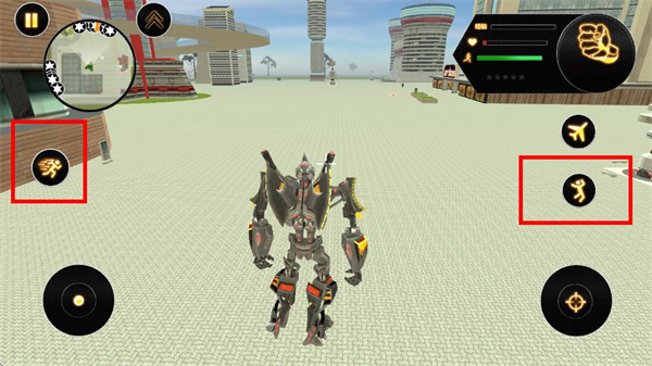 4、還有跑步、跳躍等功能按鍵,跑步可提升移動速度,快速穿梭城市,跳躍可讓機器人翻越障礙,到達高處區(qū)域,豐富探索與戰(zhàn)斗的操作方式。