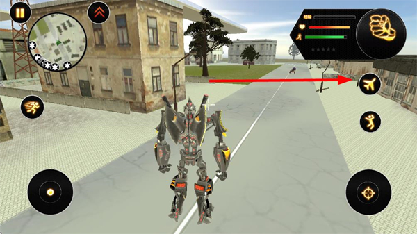 2、點擊右側(cè)飛機圖標,可在機器人與戰(zhàn)機形態(tài)間切換,戰(zhàn)機形態(tài)適合快速移動與遠程攻擊,機器人形態(tài)適合近距離格斗與場景互動。