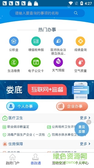 婁政通app是一款服務(wù)于婁底市民的手機政務(wù)服務(wù)客戶端應(yīng)用。提供了便捷的網(wǎng)上辦事、政務(wù)審批、辦事進度查詢等綜合業(yè)務(wù)辦理服務(wù)。真正服務(wù)于老百姓!需要的用戶歡迎在綠色資源網(wǎng)下載使用。