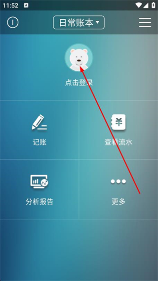 1、打開日常記賬,點(diǎn)擊頁面中間的點(diǎn)擊登錄區(qū)域。