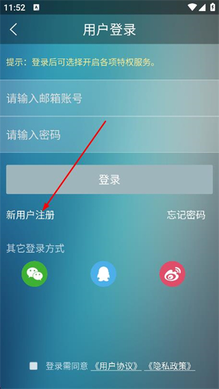 2、進(jìn)入用戶登錄頁面后,點(diǎn)擊新用戶注冊選項(xiàng)。