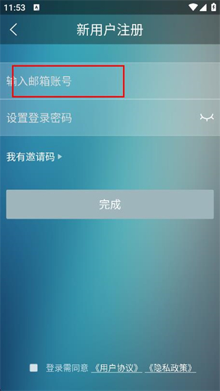 3、在新用戶注冊頁面,輸入需要登錄的郵箱賬號。
