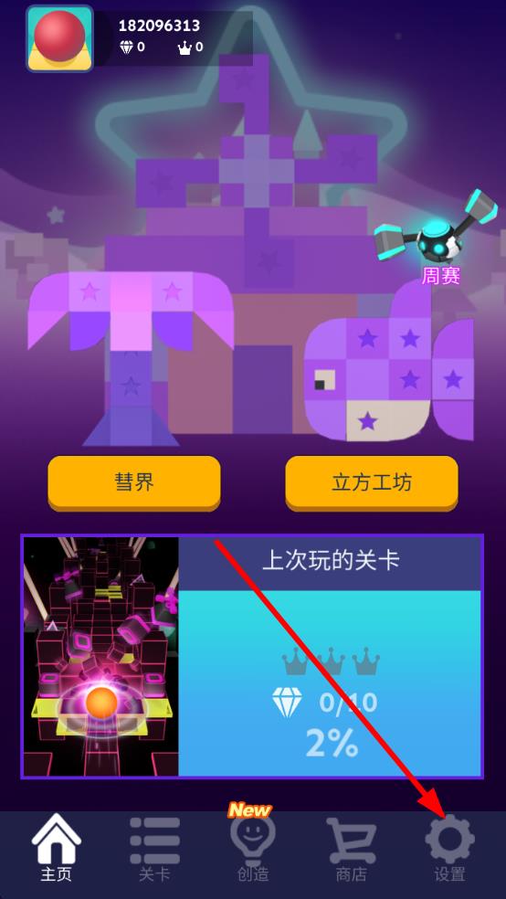 1、打開滾動的天空游戲,點擊主界面右下角設(shè)置圖標(biāo)進(jìn)入設(shè)置界面。