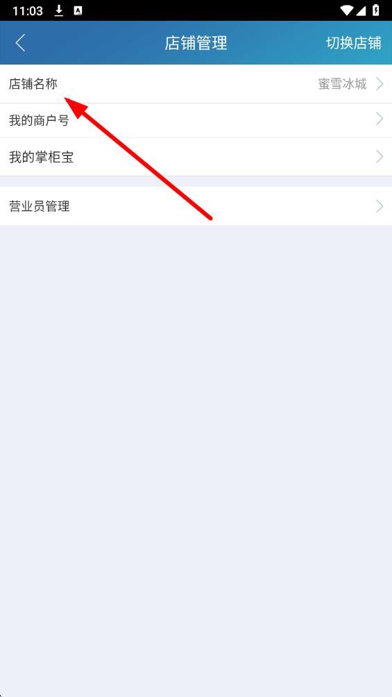 3、進(jìn)入店鋪管理頁面后,點(diǎn)擊店鋪名稱一欄的選項(xiàng)。
