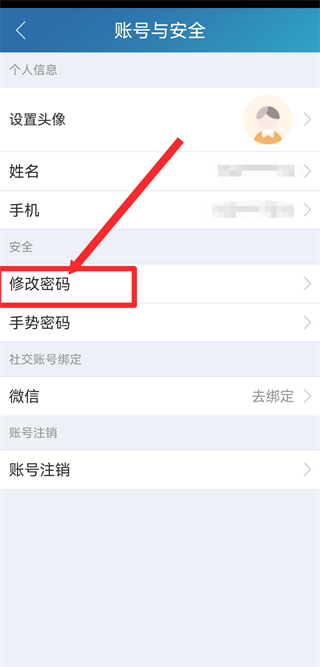 4、在賬號與安全頁面,點(diǎn)擊修改密碼,按照提示完成密碼修改操作。