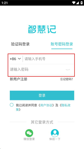 3、在賬號密碼登錄界面的請輸入手機(jī)號欄輸入手機(jī)號,在請輸入密碼欄輸入密碼。