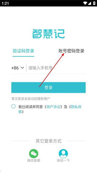 2、在登錄界面點(diǎn)擊賬號密碼登錄選項(xiàng)。
